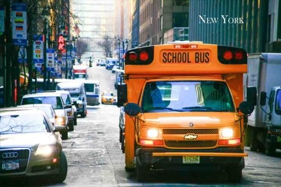 【アメリカの観光地ポストカードのAIR】「New York」スクールバスの葉書はがきハガキ photo by MIRO