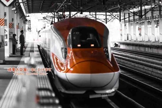 【夏の挨拶ポストカード】「残暑お見舞い申し上げますHappy Summer Days」秋田新幹線の葉書・ハガキ photo by MIRO