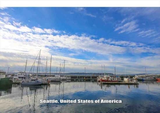 【アメリカの観光地ポストカード】「 Seattle, United States of America」シアトルの海辺ヨットのハガキ photo by MIRO