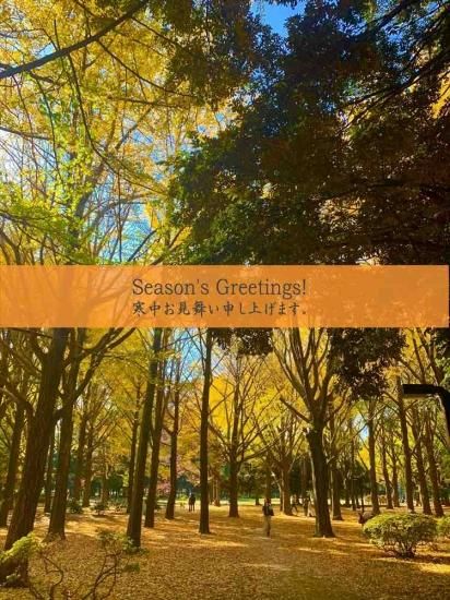 【季節の挨拶ポストカード】「Season's Greetings!」寒中お見舞い申し上げます。」代々木公園の紅葉のハガキ photo by MIRO