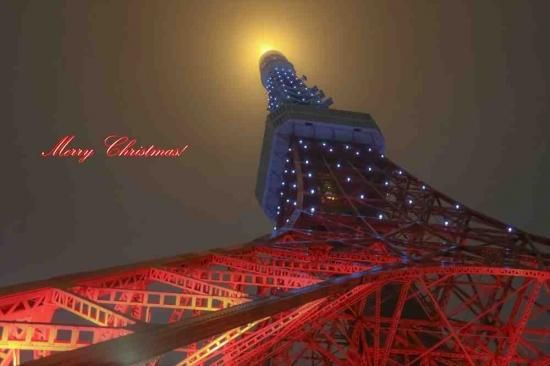 【季節の挨拶ポストカード】「Merry Christmas」東京タワーの夜景 のハガキ photo by MIRO
