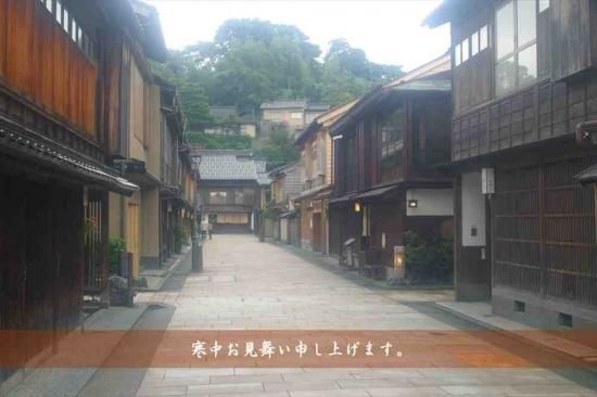 【季節の挨拶ポストカード】「寒中お見舞い申し上げます。」金沢茶屋街のハガキ photo by MIRO
