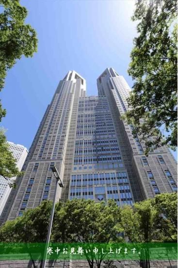 【季節の挨拶ポストカード】「寒中お見舞い申し上げます。」東京新宿都庁のハガキ photo by MIRO