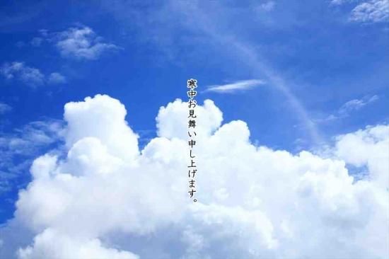 【季節の挨拶ポストカード】「寒中お見舞い申し上げます。」青空と雲のハガキ photo by MIRO