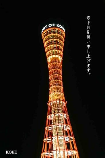 【季節の挨拶ポストカード】「寒中お見舞い申し上げます。」神戸ポートタワー夜景のハガキ photo by MIRO