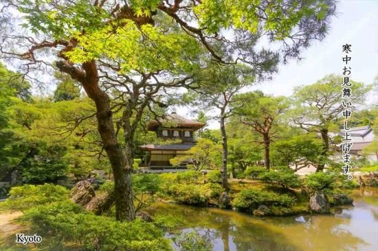 【季節の挨拶ポストカード】「寒中お見舞い申し上げます。」京都銀閣寺付近のハガキ photo by MIRO