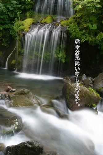 【季節の挨拶ポストカード】「寒中お見舞い申し上げます。」山梨の滝のハガキ photo by MIRO