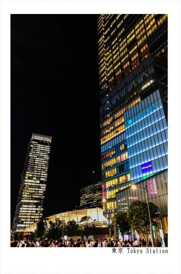 【観光地のポストカード】「東京駅 Tokyo Station」東京駅八重洲側夜の葉書 ハガキ photo by MIRO