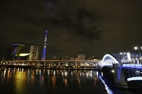 【日本の風景ポストカード】東京スカイツリーと隅田川駒形橋・コロナウイルス仕様のライティング葉書ハガキはがき photo by MIRO