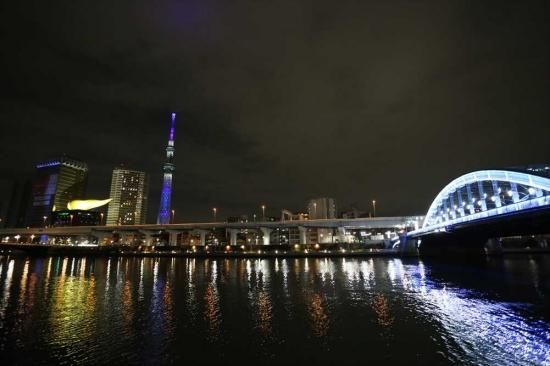 【日本の風景ポストカード】東京スカイツリーと隅田川駒形橋・コロナウイルス仕様のライティング葉書ハガキはがき photo by MIRO