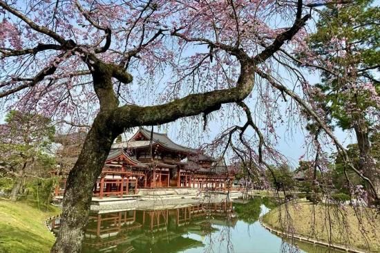 【日本の風景ポストカード】京都府宇治市平等院と梅の葉書ハガキはがき photo by MIRO