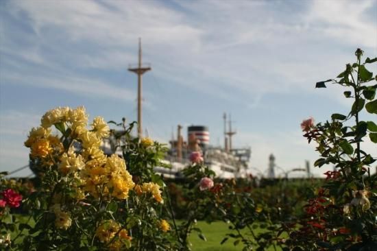【日本の風景ポストカード】神奈川県横浜市中区山下公園氷川丸と薔薇の葉書ハガキはがき photo by MIRO