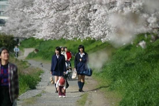 【京都の風景ポストカード】京都市を流れる鴨川と桜と女子高生の葉書ハガキはがき photo by MIRO