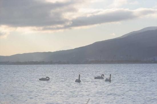 【日本の風景ポストカード】長野県諏訪市諏訪湖の白鳥の葉書ハガキはがき photo by MIRO