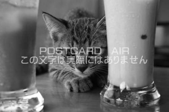 【動物のポストカードAIR】グラスと子猫の葉書(白黒)ハガキはがき photo by MIRO