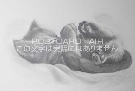 【鉛筆イラストポストカード】寝ている猫のイラスト 絵彩霞作-えはがき絵葉書postcard-