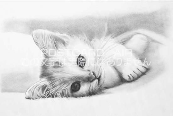 【鉛筆イラストポストカード】寝転ぶ猫 見つめる猫絵彩霞作-えはがき絵葉書postcard-