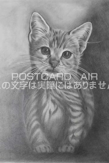 【鉛筆イラストポストカード】こちらを見る猫絵彩霞作-えはがき絵葉書postcard-