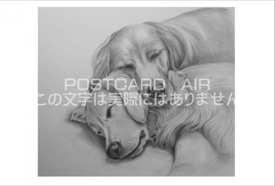 【鉛筆イラストポストカード】二匹の幸せに寝る犬の絵彩霞作-えはがき絵葉書postcard-