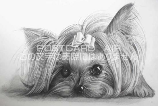 【鉛筆イラストポストカード】リボンを付けた犬の絵彩霞作-えはがき絵葉書postcard-