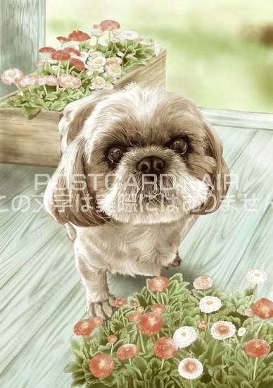 【犬のイラストポストカード】座ったプードル-はがき絵葉書postcard-絵彩霞作