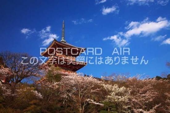 【日本の風景ポストカードのAIR】京都府京都市東山区清水寺 三重塔と桜のポストカード葉書はがきハガキ Photo by絶景.com