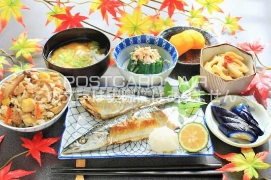 【食のポストカードのAIR】和食焼き魚とみそ汁ナスの漬物などのはがきハガキ葉書 撮影/YOSHIO IWASAWA