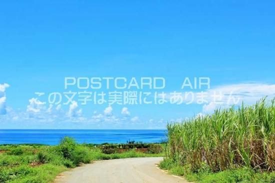 【日本のポストカードAIR】沖縄県 来間島 青空と海とサトウキビ畑のはがきハガキ葉書 撮影/YOSHIO IWASAWA