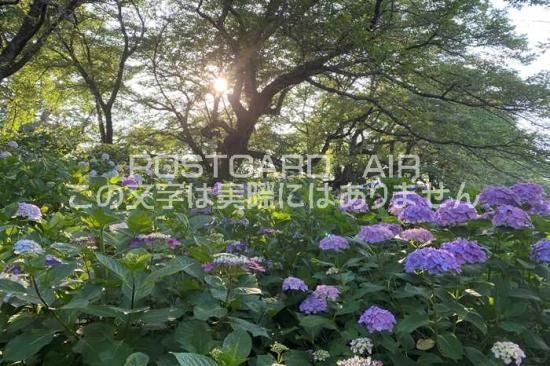 【日本の風景ポストカードAIR】埼玉県権現堂の光り輝く青・紫の紫陽花あじさい2020年満開の葉書ハガキはがき photo by MIRO
