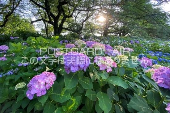 【日本の風景ポストカードAIR】埼玉県権現堂の光り輝く青・紫の紫陽花あじさい2020年満開の葉書ハガキはがき photo by MIRO