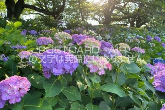 【日本の風景ポストカードAIR】埼玉県権現堂の光り輝く青・紫の紫陽花あじさい2020年満開の葉書ハガキはがき photo by MIRO