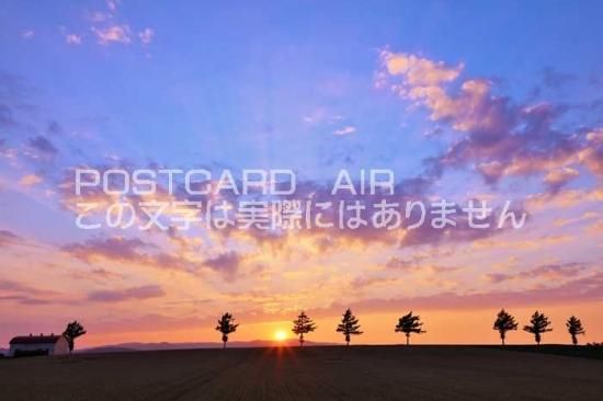 【日本の風景ポストカードAIR】北海道 メルヘンの丘 夕暮れ夕日のはがきハガキ葉書 撮影/YOSHIO IWASAWA