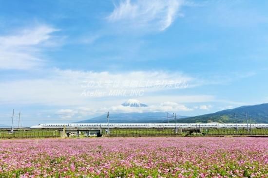 【日本の風景ポストカードAIR】レンゲ畑と新幹線 そして富士山のはがきハガキ葉書 撮影/YOSHIO IWASAWA