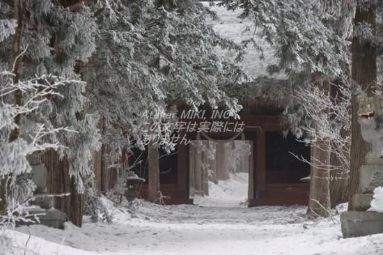 【日本の風景ポストカードAIR】長野県戸隠の冬戸隠神社へ向かう神秘的な参道の葉書ハガキはがき photo by MIRO