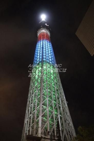【日本の風景ポストカード】東京スカイツリーのイルミネーション青赤緑の葉書ハガキはがき photo by MIRO