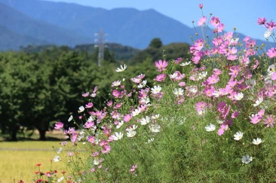 【日本の風景ポストカード】長野県の秋・コスモスの葉書ハガキはがき photo by MIRO