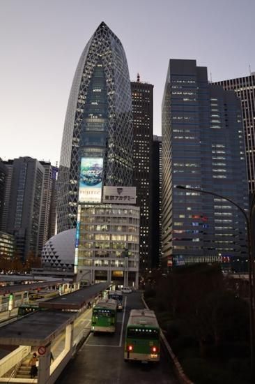 【日本の風景ポストカード】新宿区新宿西口バスターミナルとモード学園の葉書ハガキはがき photo by MIRO