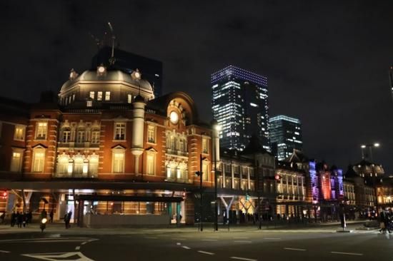 【日本の風景ポストカード】クリスマス時期東京駅丸の内とビル群の葉書ハガキはがき photo by MIRO