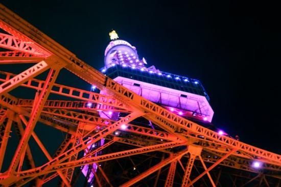 【日本の風景ポストカード】東京都港区夜に輝く紫の東京タワーの葉書ハガキはがき photo by MIRO