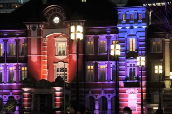 【日本の風景ポストカード】東京都千代田区丸の内1丁目9東京駅丸の内駅舎の夜景ハガキはがき photo by MIRO