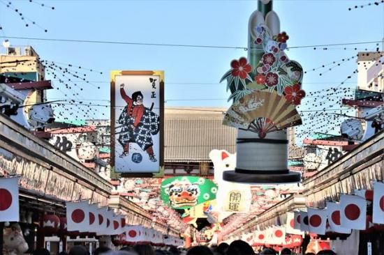 【日本の風景ポストカード】お正月の風景浅草浅草寺への道のハガキはがき photo by MIRO