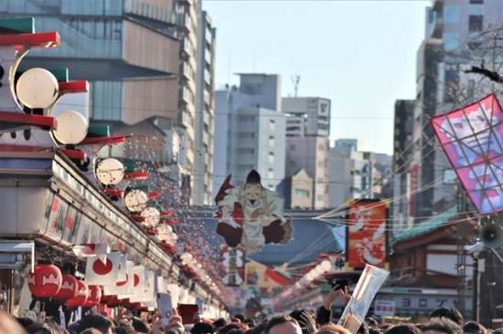 【日本の風景ポストカード】お正月の風景浅草浅草寺からの道のハガキはがき photo by MIRO