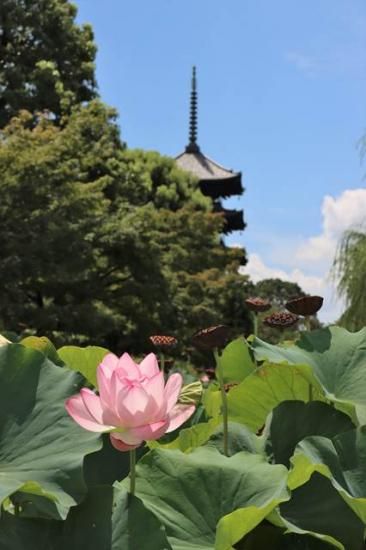 【日本の風景ポストカード】京都府京都市東寺に生息している蓮と五重塔2ハガキはがき photo by MIRO