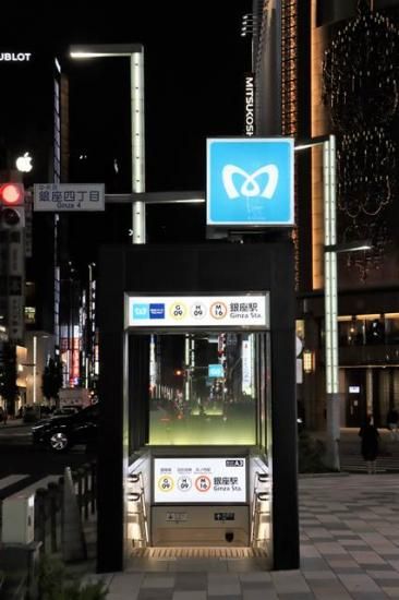 【日本の風景ポストカード】東京都銀座4丁目夜の地下鉄の入り口のハガキはがき photo by MIRO