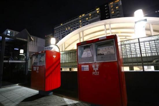 【日本の風景ポストカード】京都駅に夜の郵便ポストの葉書はがき photo by MIRO