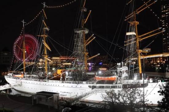 【日本の風景ポストカード】神奈川県横浜みなとみらいの帆船日本丸(夜景)のはがき photo by MIRO 2022年
