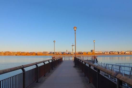 【日本の風景ポストカード】埼玉県越谷市レイクタウの朝桟橋の葉書ハガキphoto by MIRO