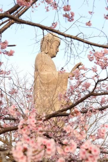【日本の風景ポストカード】茨城県牛久市久野町日本最大の牛久大仏と桜のポストカード絵葉書2はがきハガキ葉書