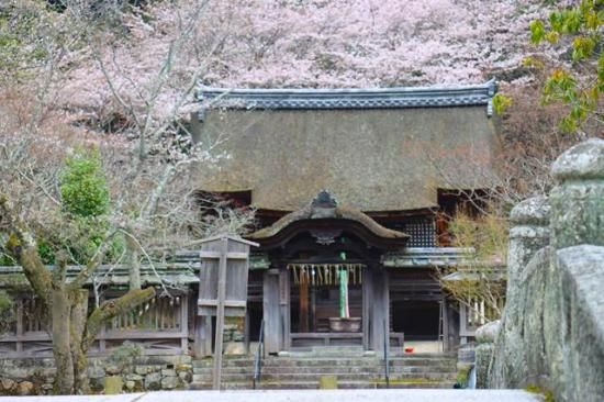 【日本の風景ポストカード】大津市三井寺の石垣と桜と門2のポストカード絵葉書はがきハガキ葉書