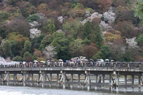 【日本の風景ポストカード】京都市雨の嵐山渡月橋と桜8ポストカード絵葉書はがきハガキ葉書